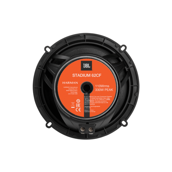 JBL Stadium 62CF zvočniki predstavljajo vrhunec kakovosti med avtozvočniki serije Stadium. Zasnovani so za zahtevne uporabnike, ki želijo brezkompromisno zvočno izkušnjo v vozilu. Uporaba naprednih materialov, kot so steklena vlakna za nizkotonec in aluminij za visokotonec, zagotavlja izjemno zvočno natančnost in zanesljivost tudi pri visokih glasnostih.