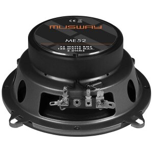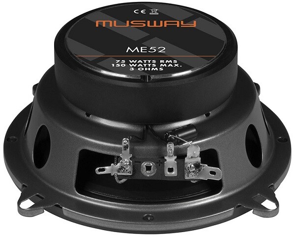 Musway ME52: 13 cm koaksialni par, 75/150 W, 3 Ω, 65–22 kHz, PP stožci, 20 mm svilni tweeter, izrez 115 mm, globina 52 mm, mrežice.